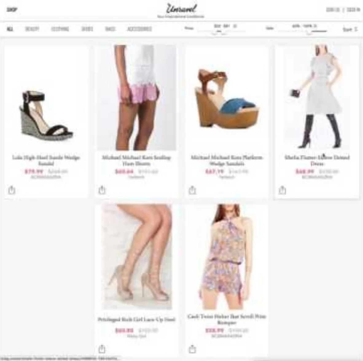 Desktop interaction spotlighting filtering, sorting, and navigation for the shopping deals website Unravel.